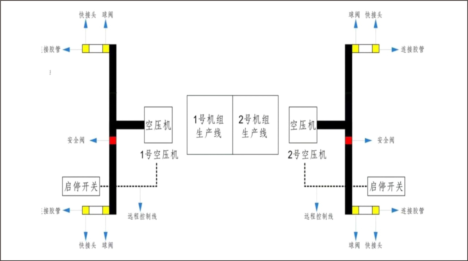 本方案為單臺(tái)低壓螺桿空壓機(jī)粉料輸送方案設(shè)計(jì),空壓機(jī)安裝 在機(jī)房?jī)?nèi)直接使用管道將壓縮空氣接駁在罐車壓縮空氣接駁車,中 間無(wú)需另外接儲(chǔ)氣罐、冷干機(jī)及油水分離設(shè)備,運(yùn)轉(zhuǎn)穩(wěn)定、方便快 捷、節(jié)能高效。